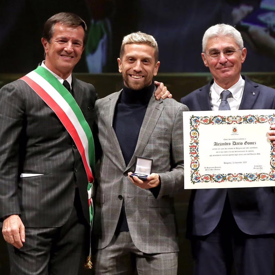 Conferita al “Papu” Gomez una delle quindici benemerenze civiche del Comune di Bergamo. La premiazione, presenziata dal sindaco Giorgio Gori e dal presidente del consiglio comunale Ferruccio Rota, si è tenuta presso il Teatro Sociale di Città Alta.