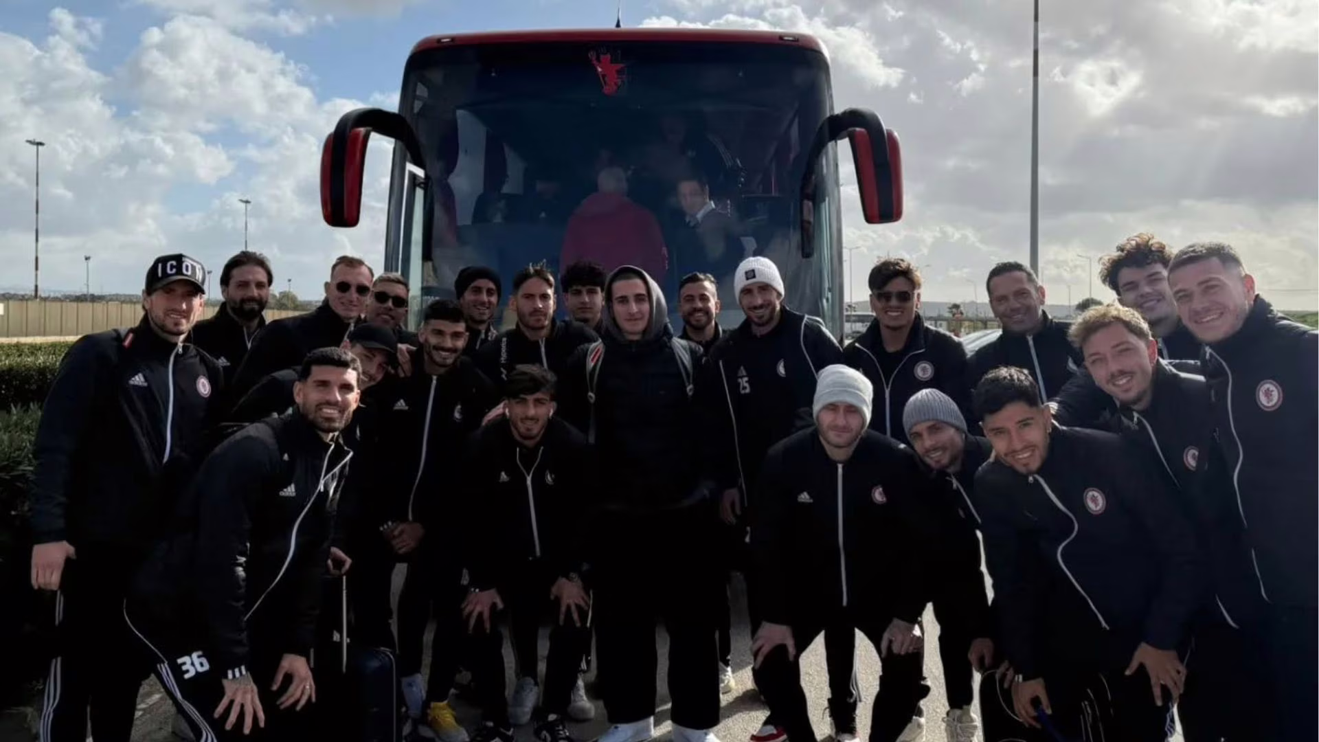 “Facciamo i complimenti al ragazzo nella foto con il cappuccio (al centro, ndr.). Sarà l’unico tifoso presente stasera a Trapani. È partito da Bergamo alle 2 stanotte. Ha fatto scalo a Napoli (aeroporto), dove ha incontrato la squadra in partenza per Trapani. Grande” – scrive la pagina nella didascalia della foto che ritrae il tifoso insieme alla squadra.