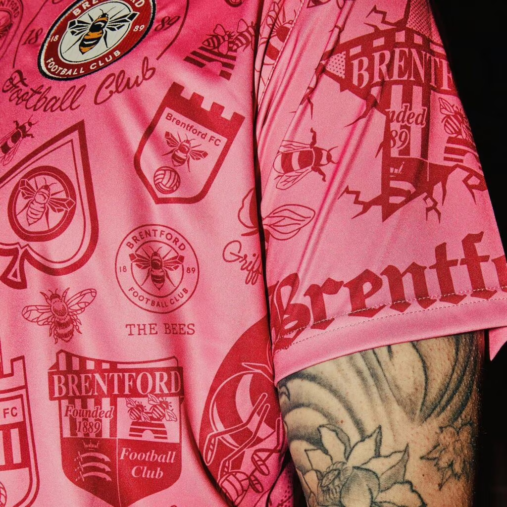 Si tratta del Brentford, club che milita nella Premier League inglese. Il club ha utilizzato le grafiche dei propri tifosi più accaniti per realizzare la nuova maglia, disponibile su due colorazioni: blu e rosa.