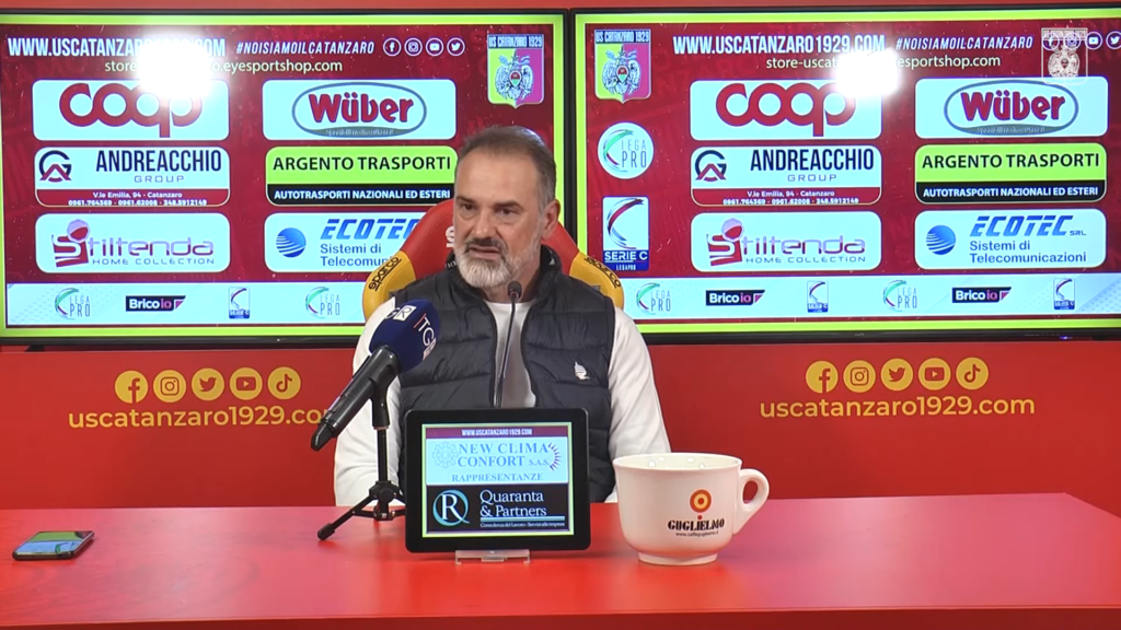 Immagine in evidenza: mister Vincenzo Vivarini – crediti foto: canale ufficiale YouTube U.S. Catanzaro 1929 (frame da conferenza stampa post-Foggia)