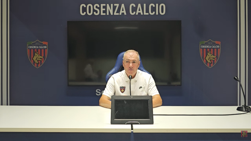 Immagine in evidenza: mister Massimiliano Alvini – crediti foto: canale ufficiale YouTube Cosenza Calcio (frame da video)