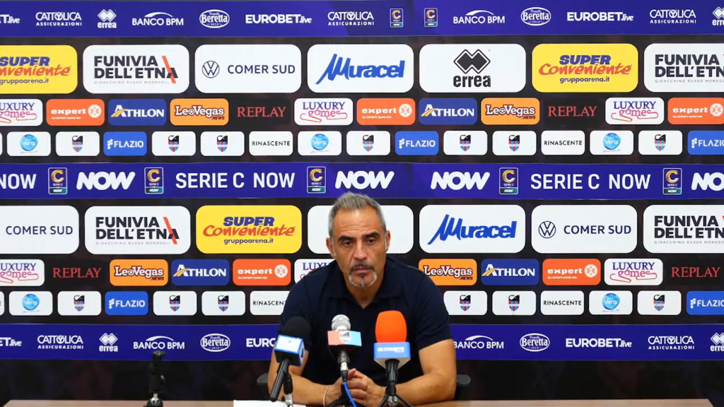 Immagine in evidenza: mister Domenico Toscano – crediti foto: canale ufficiale YouTube Catania FC (frame da video)