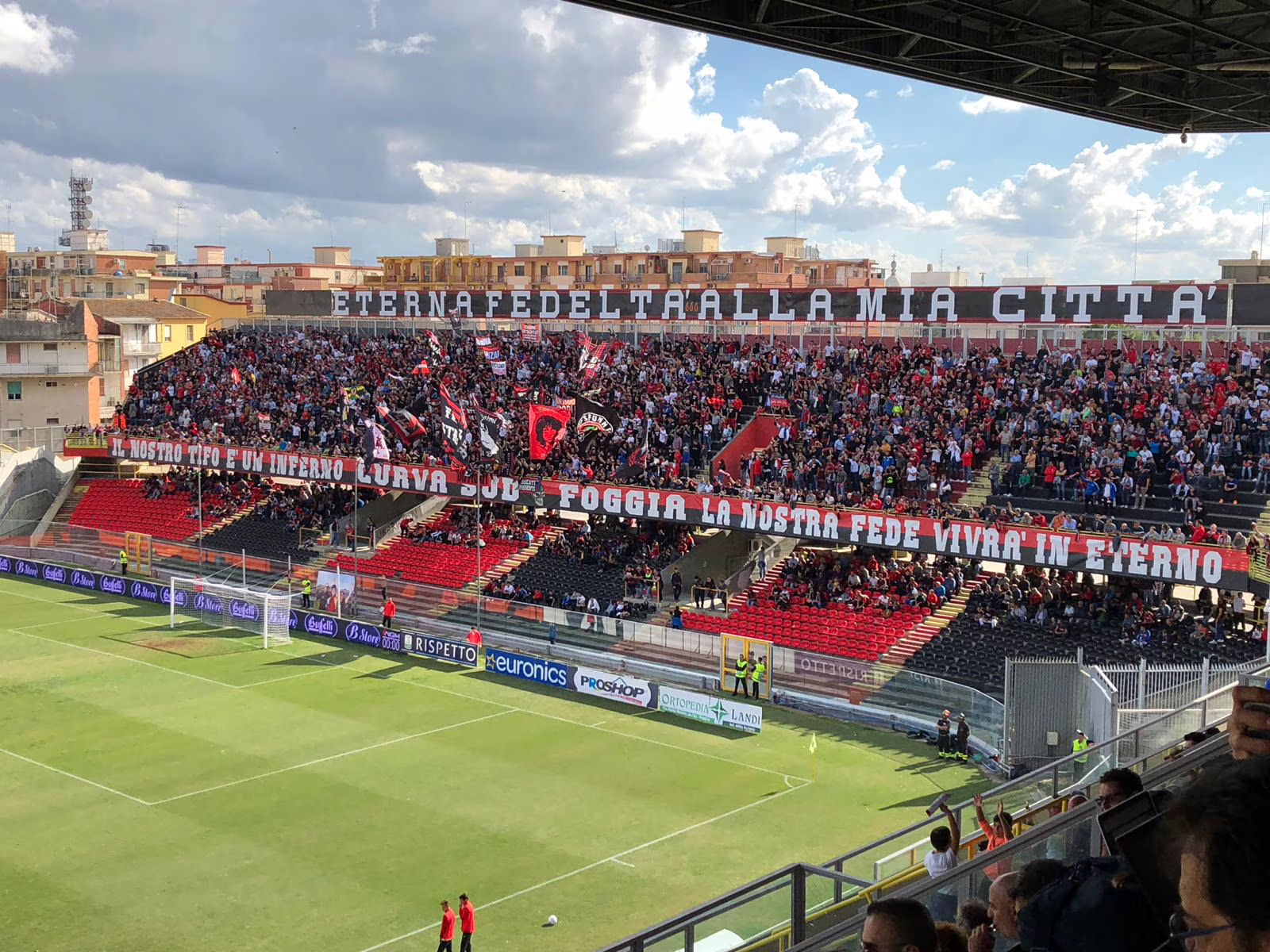 La coreografia dei tifosi rossoneri allo Zaccheria. Foto inviata da un tifoso