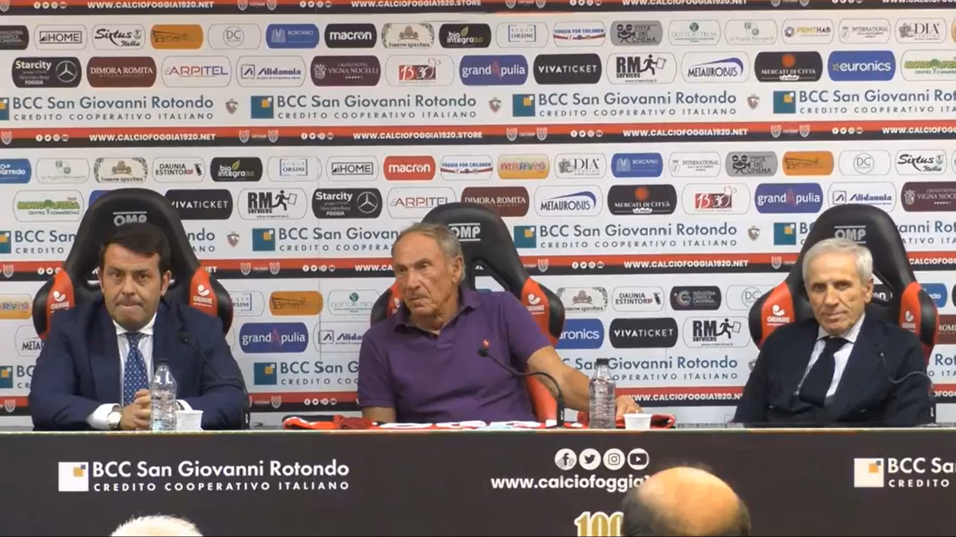 Foggia: si è tenuta nella giornata di oggi – martedì 20 luglio, presso la sala conferenze “A. Fesce” dello stadio “Pino Zaccheria” – una conferenza stampa alla presenza del Presidente Nicola Canonico, accompagnato dal Direttore Sportivo Giuseppe Pavone e dal Mister Zdeněk Zeman, per la presentazione del nuovo organigramma.