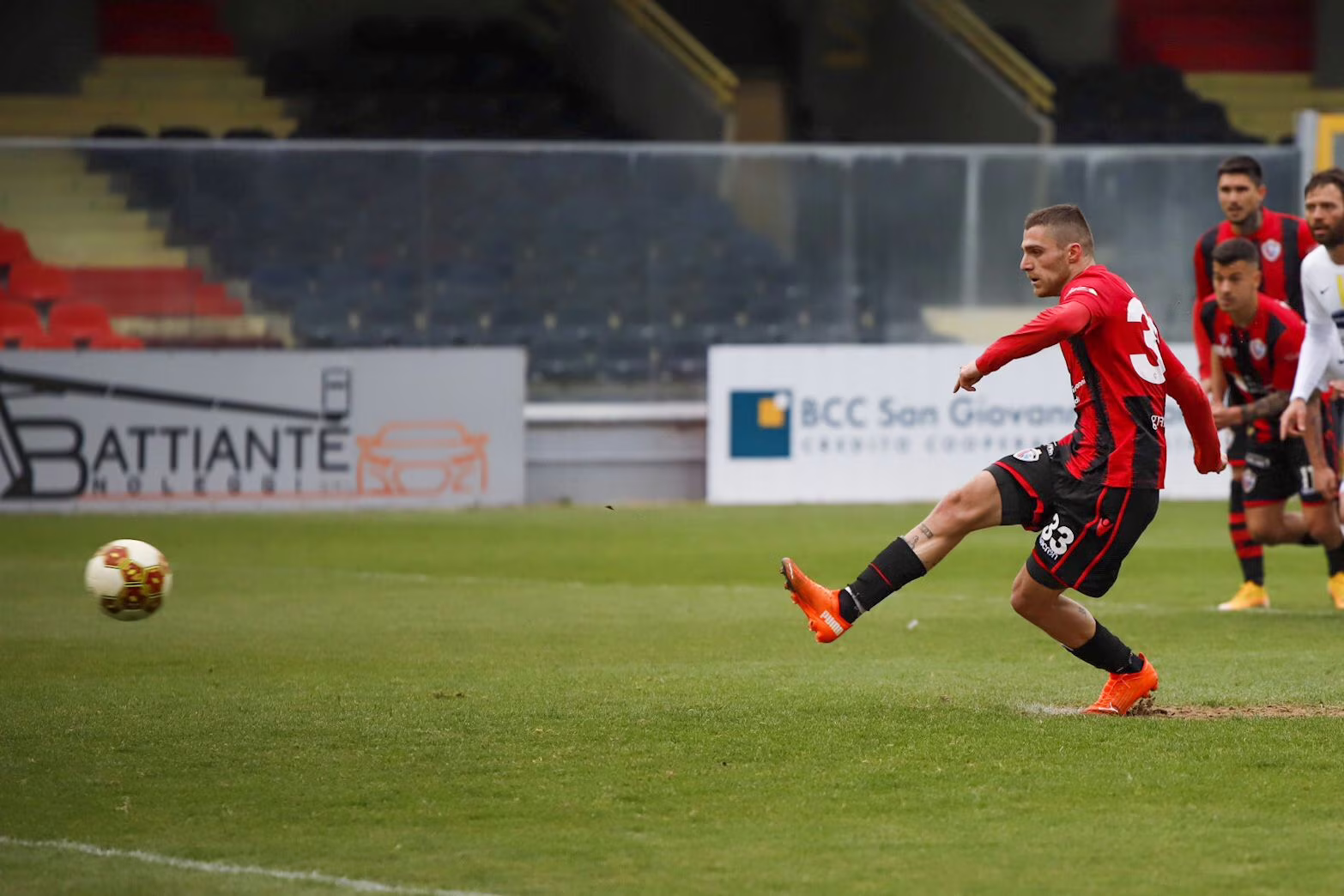 Immagine in evidenza: il rigore di Michele Rocca in Foggia 1-1 Viterbese del 21/03/2021 (Serie C – girone C 2020/2021, 32^ giornata) – crediti: foto di Mario Marino