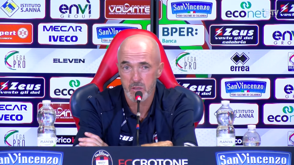 Immagine in evidenza: il tecnico del Crotone, Franco Lerda – crediti foto: screenshot dalla conferenza stampa pregara col Foggia, pubblicata sul canale YouTube ufficiale dei rossoblù