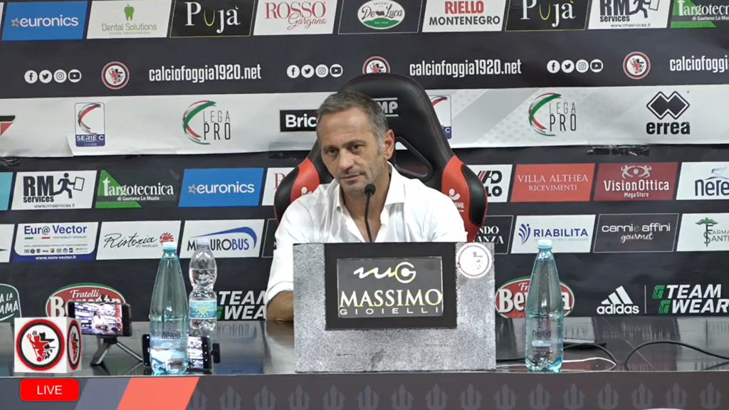 Immagine in evidenza: mister Fabio Gallo in conferenza stampa pre Foggia-Fidelis Andria – crediti foto: screenshot dalla diretta Facebook del Calcio Foggia 1920