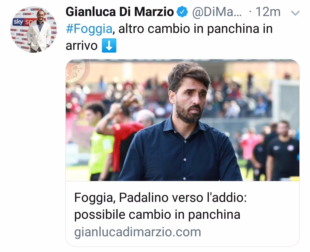 Secondo quanto riferisce il giornalista Gianluca Di Marzio, “Dopo la sconfitta nel derby pugliese contro il Lecce, il Foggia potrebbe cambiare ancora in panchina. Si avvicina infatti il ritorno di Grassadonia, con l’esonero di Pasquale Padalino che dovrebbe avvenire nelle prossime ore”.