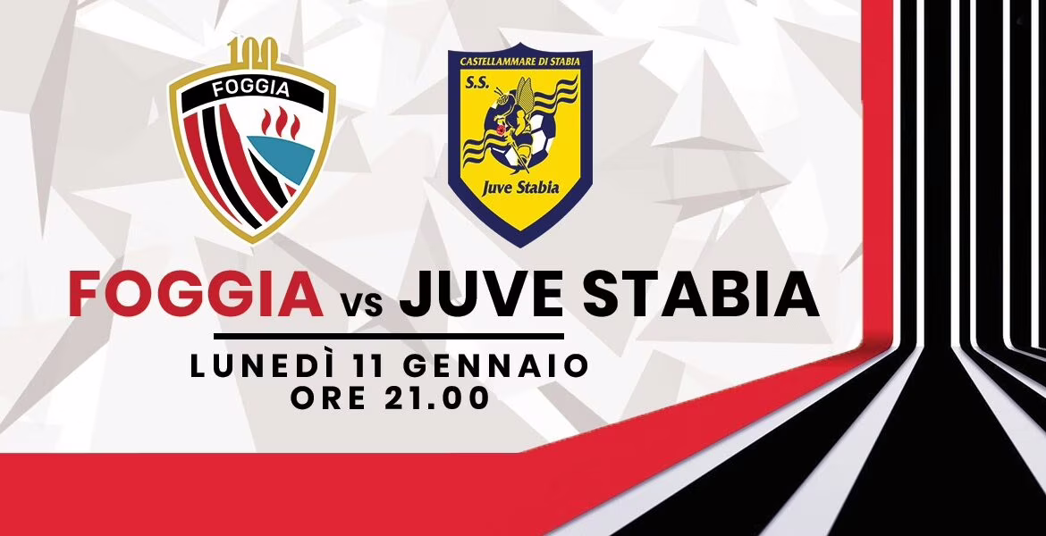 La gara Foggia-Juve Stabia, valida per la 18^ giornata del campionato di Serie C – girone C, in programma lunedì 11 gennaio allo Stadio Comunale “Pino Zaccheria”, sarà disputata alle ore 21:00 e trasmessa in diretta su RaiSport.