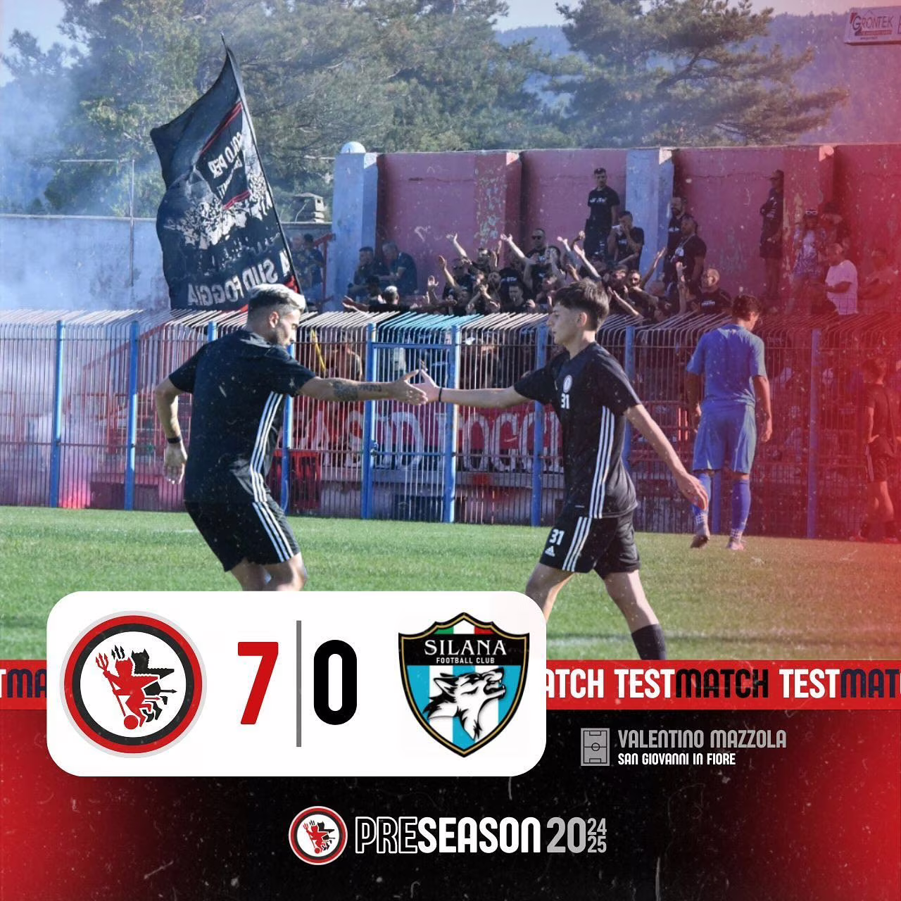Si è concluso pochi minuti fa (stesura articolo alle 20:14 di sabato 27 luglio 2024) l’allenamento congiunto tra il Foggia e la Silana F.C. 2019, con il risultato di 7-0 per i Satanelli. Apre le marcature Sarr dopo quattro minuti di gioco e chiude Santaniello (doppietta) al 72′. In rete vanno anche Zunno, Ascione (in prova), Emmausso e Tascone.