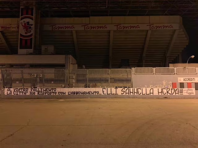 “Al vostro fallimento la città ha risposto con l’abbonamento. F.lli Sannella Merda”.