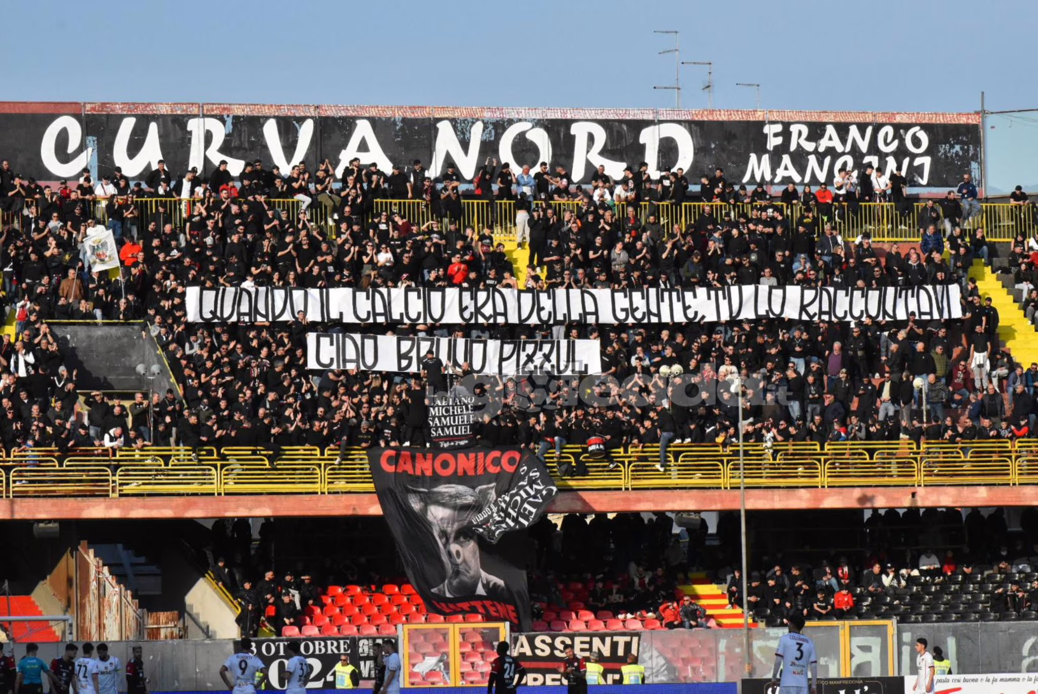 Nel corso di Foggia-Sorrento, vinta per 2-1 dai padroni di casa (qui la cronaca della partita) la Curva Nord ha voluto rendere omaggio alla storica voce Rai della Nazionale e del calcio italiano, Bruno Pizzul.