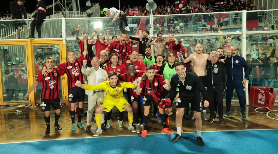 Immagine in evidenza: l’esultanza dei rossoneri dopo la qualificazione in finale playoff – crediti foto: sito ufficiale Calcio Foggia 1920