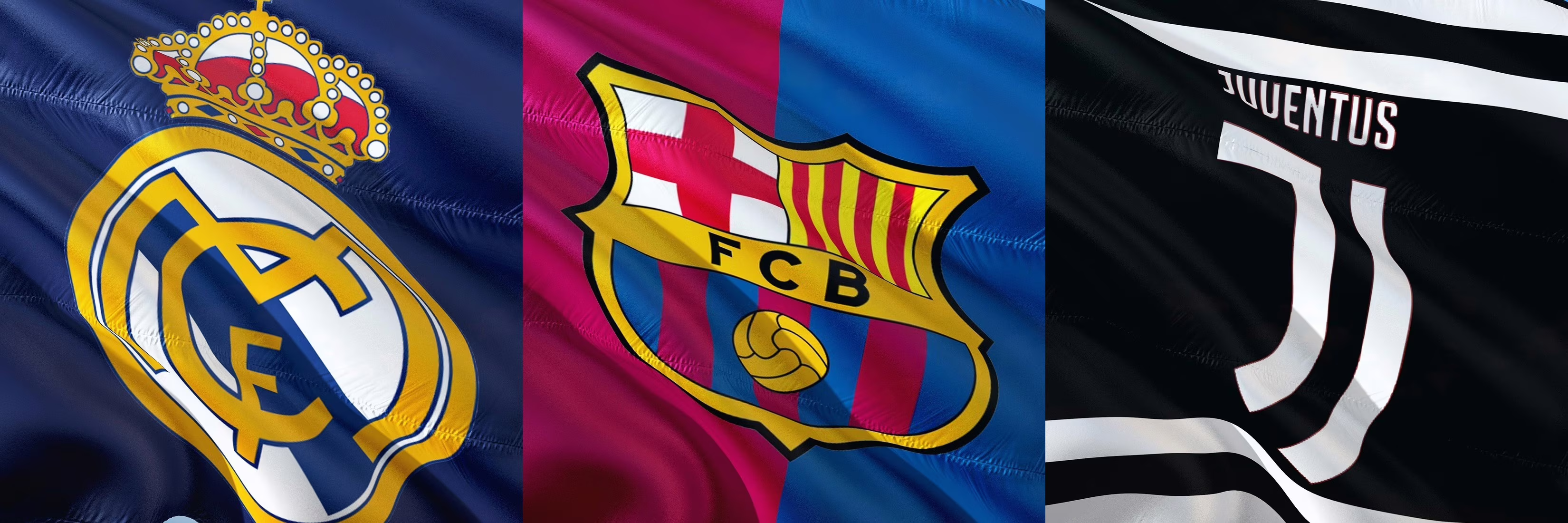 Immagine in evidenza: stemmi Real Madrid, Barcellona, Juventus - crediti (di tutte e tre le foto): foto di jorono da Pixabay